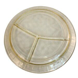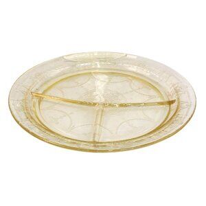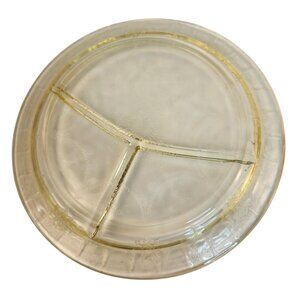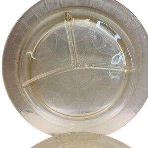 Enhance your dining experience with this set of two vintage divided dinner plates by Federal Glass. Featuring an elegant amber hue, these plates are beautifully embossed with a delicate floral and lace-like design characteristic of Depression-era glassware. Each plate is divided into three sections, perfect for serving meals with multiple components while keeping them neatly separated. With a spacious 10-inch diameter, these plates offer both practicality and charm, making them a great addition to your table décor or vintage collection. Whether used for special occasions or displayed in your home, these collectible plates effortlessly combine functionality with timeless style.