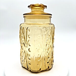 70s, 1970s, Retro, Canister, Jar, Federal Glass, LE Smith, Atterbury Scroll, Imperial, Amber Glass, Kitchen Storage