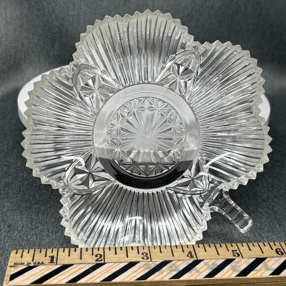 Vintage Federal Glass Dish 4 Leaf Clover Clear Starburst Candy Trinket 1960s