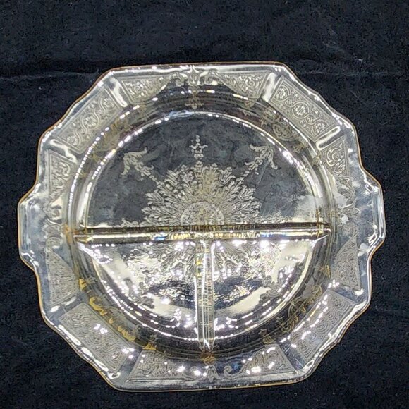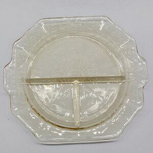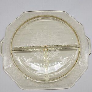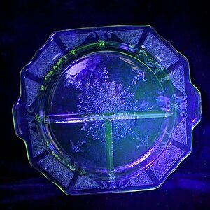 Vintage Federal Glass Divided Serving Plate With Punched Handles Design Uranium