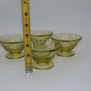 Vintage Federal Glass Madrid Yellow Amber Sherbert Dessert Bowls Set of 4