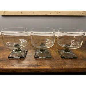 Vintage Federal Glass Nordic Midnight Smoke Champagne Sherbet Glasses Set Of 3