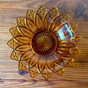 Vintage Federal Glass Petal Amber Bowl – 8" Sunflower Pressed Glass