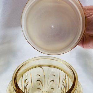 Vintage Federal Glass "Show Off Amber" Large Canister with lid