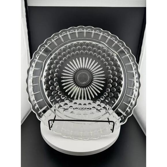 Vintage Federal Glass Sunflower Bubbles Scallop Footed Cake Plate