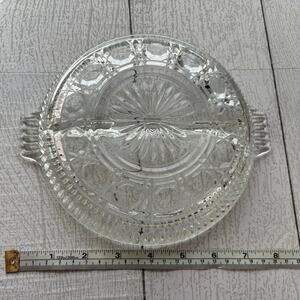 Vintage round divided relish dish made by Federal Glass, pattern is the Windsor Button and Cane pattern. It is in excellent vintage condition with no chips, cracks or scratches. Please note that one side does have a slightly sharp edge. No flaws - it is just somewhat sharp. Please see pictures for details and measurements.