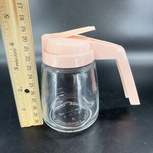 Vintage Federal Housewares 12 oz Glass Syrup Dispenser w Pink Plastic Lid Retro