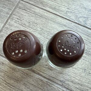 Vintage Federal Housewares Glass Salt & Pepper Shakers Brown Top