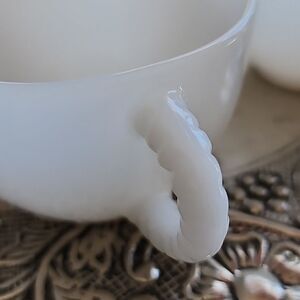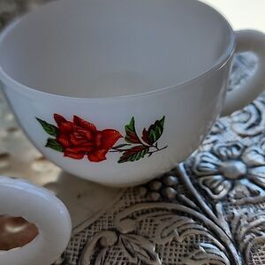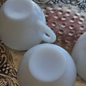 set of 3 vintage Federal Punch Teacups white milk glass featuring a rose on each cup.