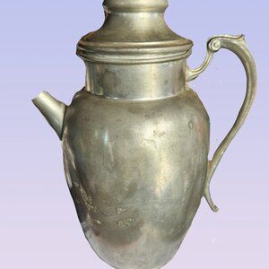 Vintage Federal solid pewter teapot/coffee pot. Some dings. 8 ½ inches tall x 4 inches diameter.