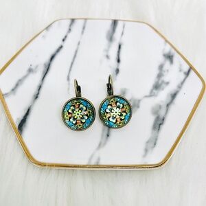 These Vintage like Floral Print Design Earrings are the perfect addition to your jewelry collection. Crafted from copper and glass, they feature a beautiful sunflower image with a vintage feel. Measuring 1.18" long, these earrings are sure to make a statement.
