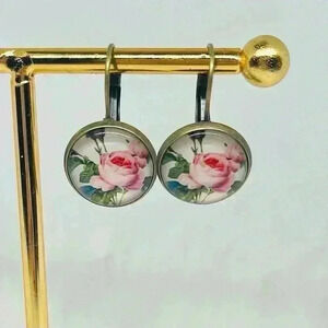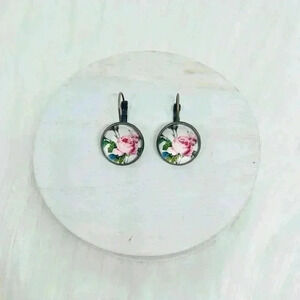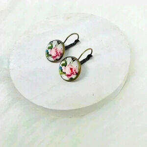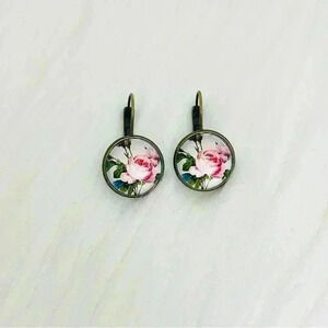 These Vintage like Pink Roses Print Earrings are the perfect addition to your jewelry collection. Crafted from copper and glass, they feature beautiful pink roses image with a vintage feel. Measuring 1.18" long, these earrings are sure to make a statement.