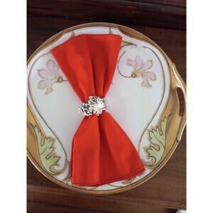 One of a kind vintage heavy silver plate napkin ring with red felt lining allows adjustment for it to be used with lite-weight or more dense napkins. This pretty napkin ring could be the piece to complete a set of similar or contrasting rings.