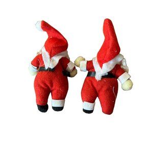 Add some vintage charm to your Christmas tree with this lot of two felt Santa Claus ornaments. Each Santa features a plastic face and measures 5.5 inches in height. These ornaments are perfect for collectors and fans of mid-century modern decor. The set includes a vintage ornament that is sure to bring back nostalgic memories of Christmases past.