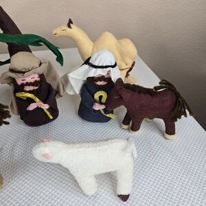 Vintage Felt Nativity Scene Set Angel Shepherds Wise Men Camel Donkey