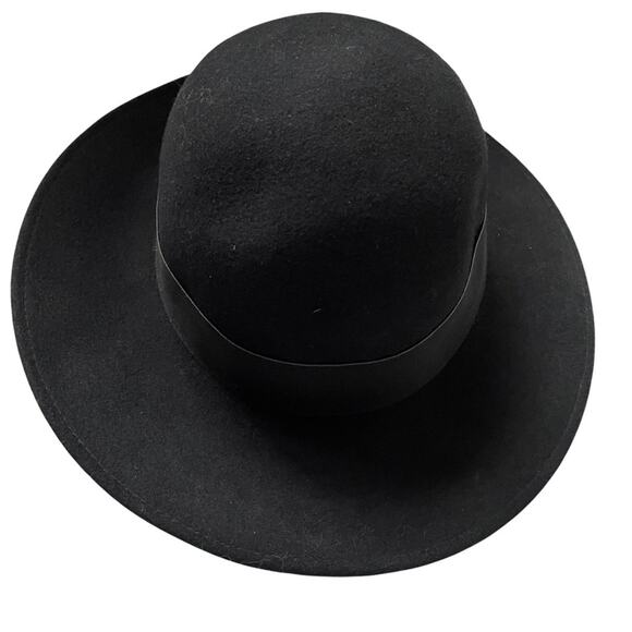 Vintage Felted Wool Cloche Hat Ribbon Bow Trim Made in Italy Black EUC