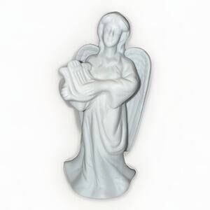 Vintage Female Angel Playing Harp Figurine White Porcelain Decoration 5.75"