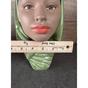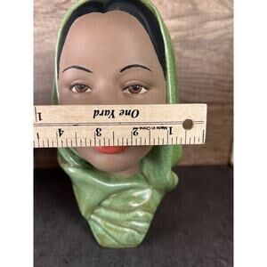 Vintage Female Head Bust Hand Painted Chalk Ware Green Head Scarf Ceramic