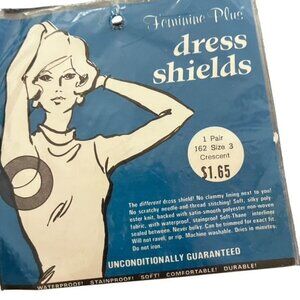 Vintage new in package set of two Feminine Plus dress shields, 1 pair 162 size 3 crescent, 1 pair 162 size 2 crescent (MM)