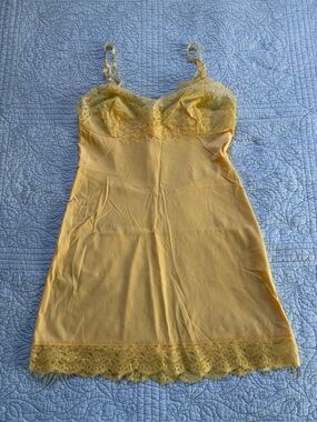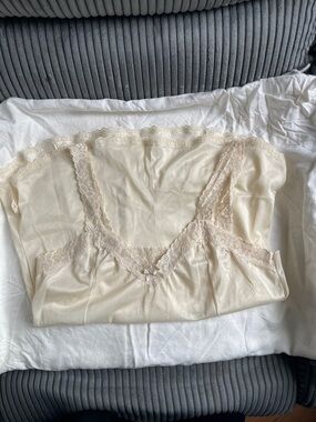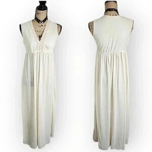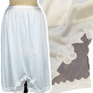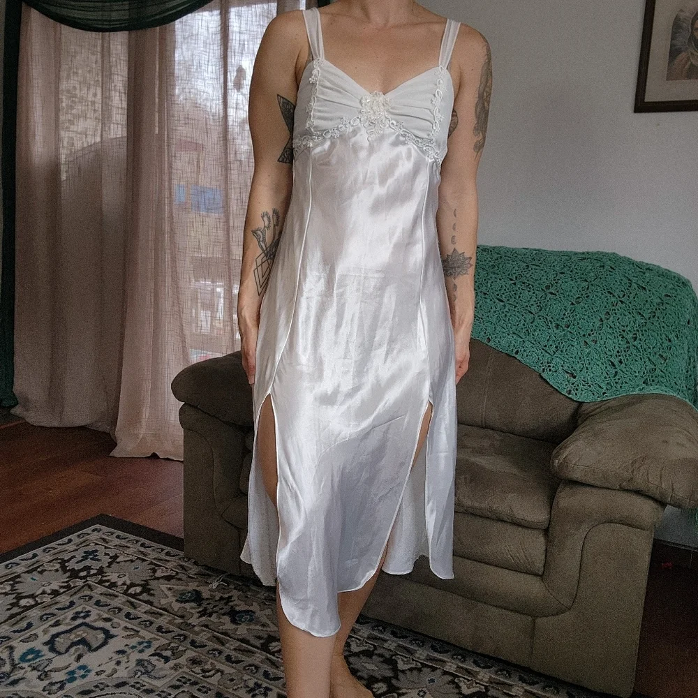 Vintage Feminine White Satin Beaded Midi Slip Dress Size Medium