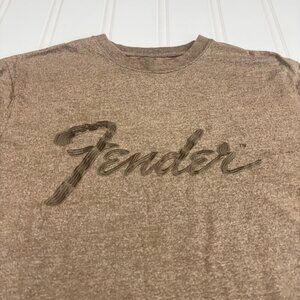 Vintage Fender Brown Short Sleeve T-Shirt XXL embroidered Crew Neck Casual
