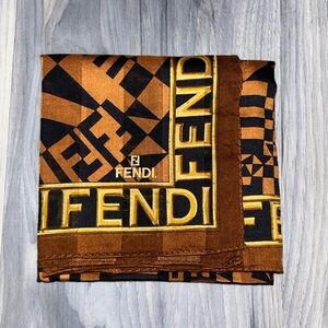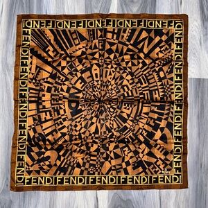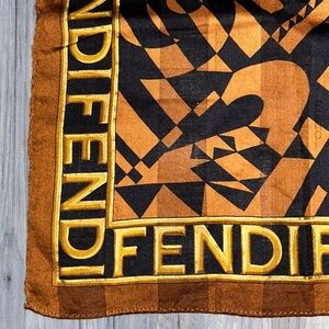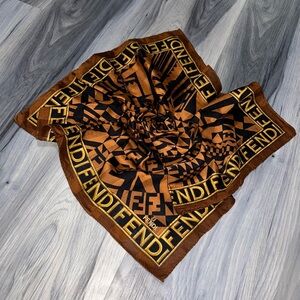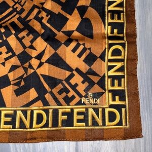 Vintage Fendi Brown Black & Gold Geometric All over Print Cotton Handkerchief