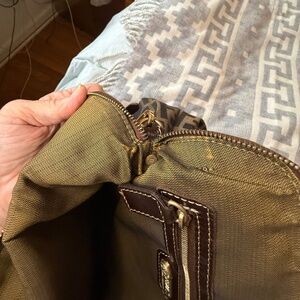 Beautiful Fendi Two Way Handbag with classic Fendi Zucca print canvas and gleaming Gold FF Hardware. Great as handbag or crossbody. Scarf pictured in photos not included but is available in my closet.