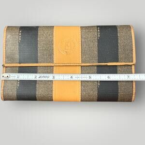 Vintage Fendi Pequin Stripe Canvas & Leather Wallet