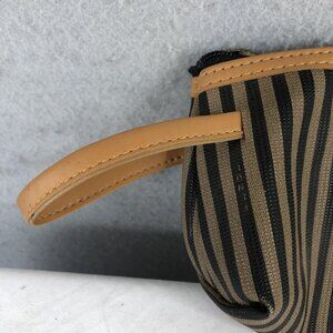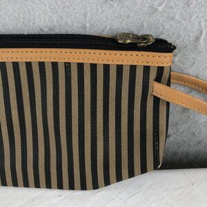Vintage Fendi Roma Italy 1925 Striped Cosmetic Clutch Bag Leather Trim
