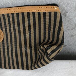 Vintage Fendi Roma Italy 1925 Striped Cosmetic Clutch Bag with Leather Trim