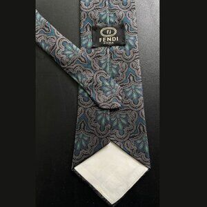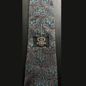 Vintage Fendi Roma Men's Silk Tie Paisley Blue Grey Preppy