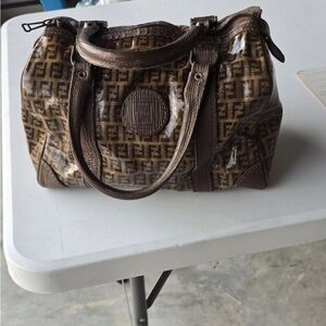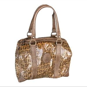 Vintage Fendi Zucca FF Boston Tote Handbag Brown Tan Monogram Women