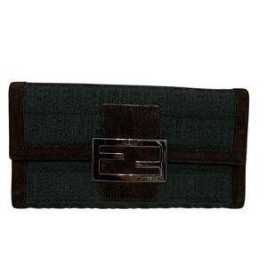 Vintage Fendi Zucca Long Wallet Silver Hardware