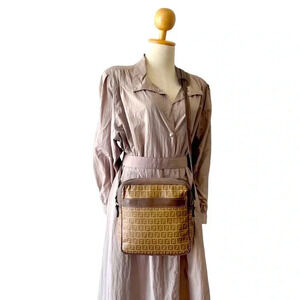 Vintage Fendi Zucchino Coated Canvas Crossbody Handbag