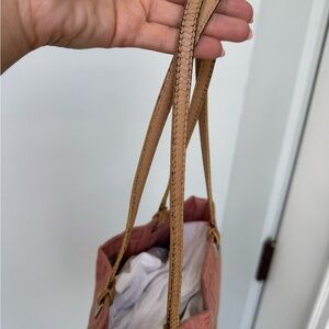 Price reflects condition: heavy wear and marks to leather straps, minor signs of use to fabric, and small scuffs on hardware (all photographed). Interior is clean and functional. A charming early 2000s/vintage piece with tons of life left.