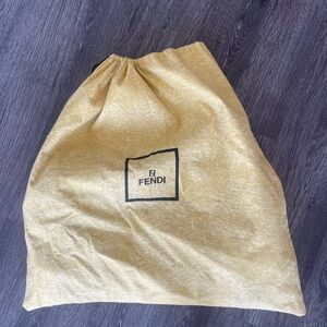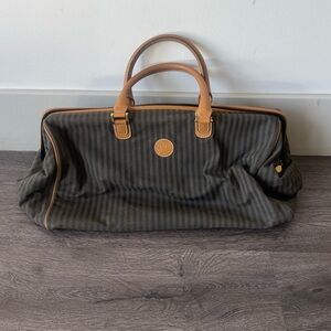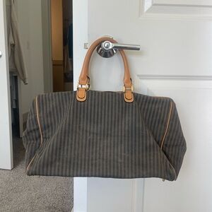 Stylish Fendi bag featuring a classic striped design. The tan handles add a touch of elegance. Perfect for everyday use or for travel. Condition is fair.