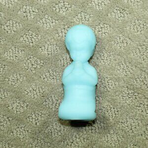 Vintage Fenton 3.75" Satin Blue Glass Praying Boy Figurine with Original Sticker