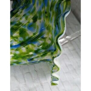 Vintage Fenton Adventurine Glass Basket: Blue, Green, & White Swirl