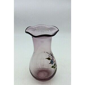 Vintage Fenton Amethyst Purple Glass Floral Hand Painted Vase
