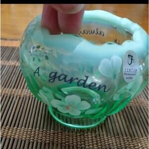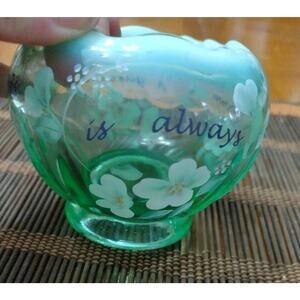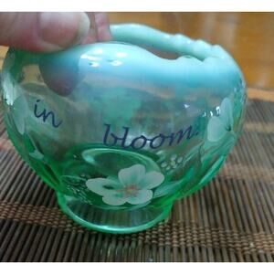 Vintage Fenton Art Glass Floral Rose Bud Vase Hand Painted Signed Light Green