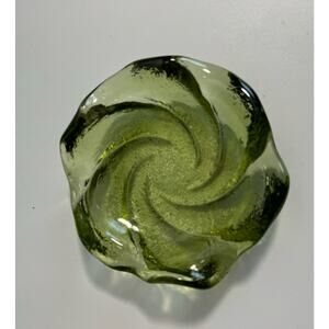 Vintage Fenton Avocado Green Glass 5” Textured Swirl Ashtray Candy Dish Bowl