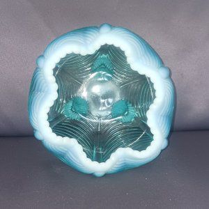 Vintage Fenton Blue Opalescent Draped 3 Footed Rose Bowl