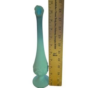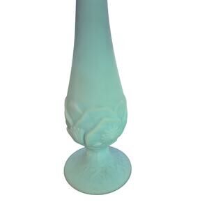 Vintage Fenton Blue Satin Custard Glass Bud Vase Water Lily Pattern