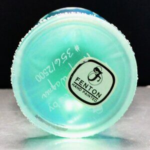 Add a touch of springtime charm to your collection with this Fenton Limited Edition Glass Egg, hand-painted by renowned artist Marilyn Wagner. Numbered #356 of 2,500, this piece features delicate white butterflies and floral motifs on a rich blue-green satin glass base. The egg comes with its original box and bears the official Fenton “Hand Painted” sticker and artist signature on the bottom.
