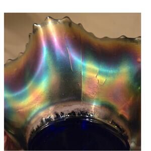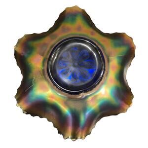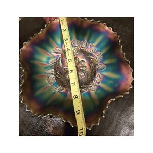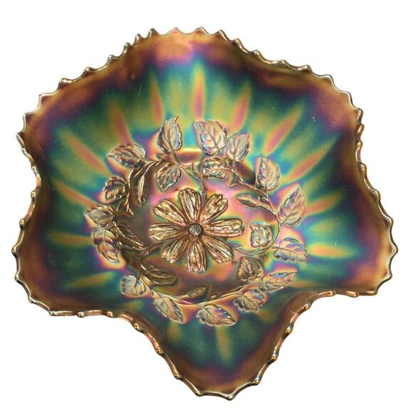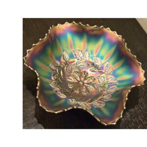 Vintage Fenton Carnival Glass Bowl Scalloped Edge Floral Pattern 10”