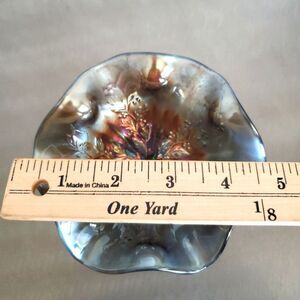 Vintage Fenton Cobalt Carnival Glass Ruffle Compote Rib and Holly Footed Jelly Dish 4"