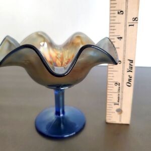 Color: Cobalt base with Iridescent Carnival Glass Finish