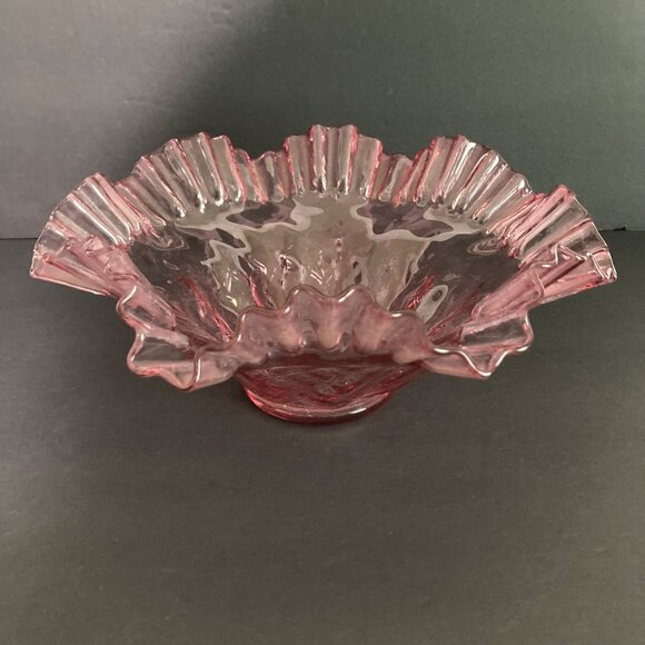 Vintage Fenton Cranberry Pink Ruffled Crimped Bowl