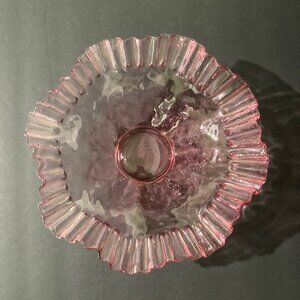 This ruffled edge glass bowl enhances any space with its elegant design and soft pink hue, designed to be both decorative and functional.