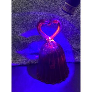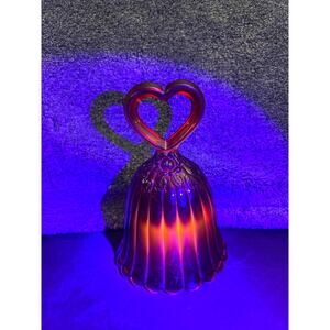 This vintage Fenton bell features a beautiful ruby red heart-shaped design that glows under black light. Made in the United States in the 1990s catalog #9764 RU.